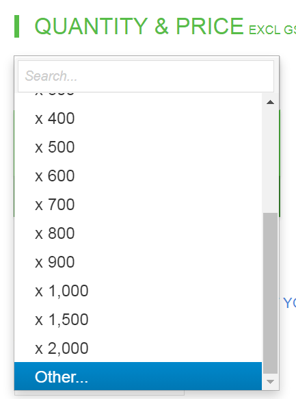 If the amount you want to quote for is not in the drop-down list, scroll to the bottom of the list and click Other. Then you can type the number you want.
